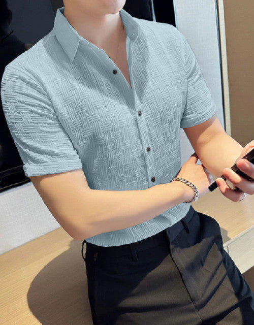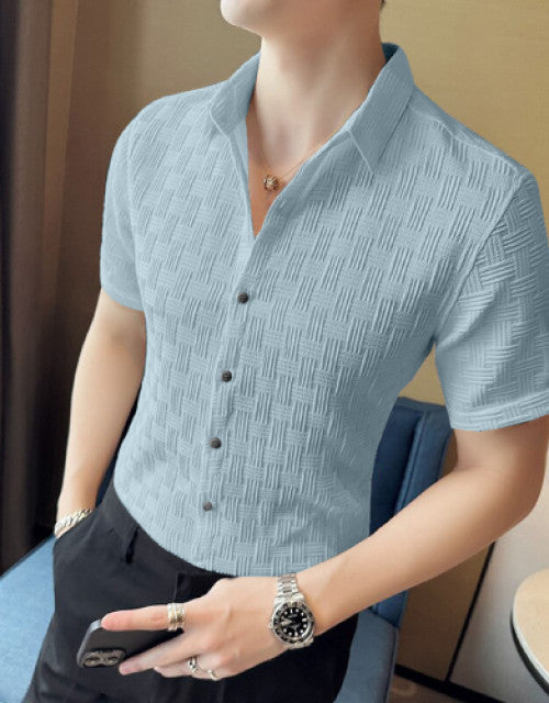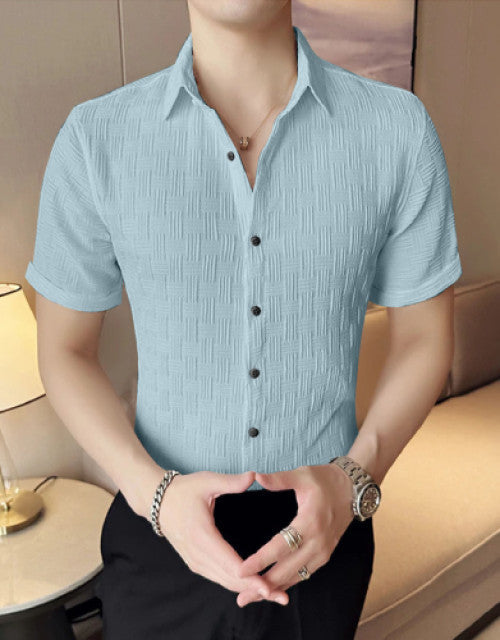 Men Regular Fit Shirt with Spread Collar